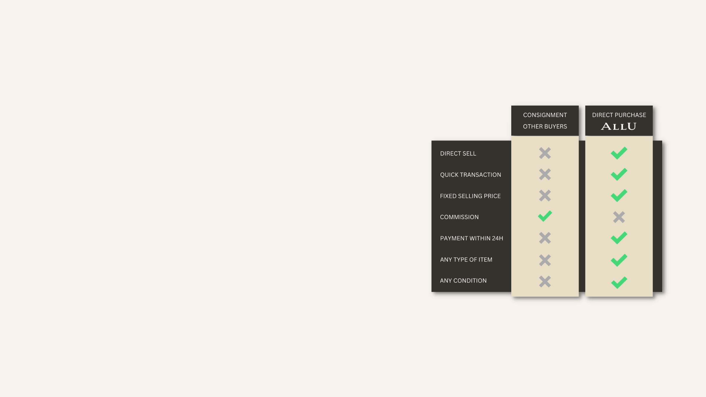 We appraise your items and make an offer. If you accept it, you get paid immediately via bank transfer. If you don’t accept the offer, we will send back the items for free.